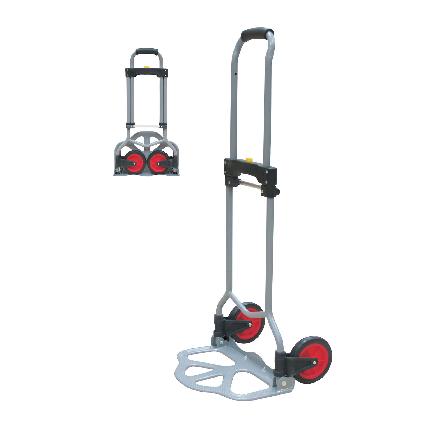 CARUCIOR TIP PLATRFORMA TRANSPORT MARFA, PLIANT CU MANER EXTENSIBIL 71/95 CM 60K este un carucior usor, cu greutate de doar 3 kg, deschis si practic pentru transportul marfurilor, coletelor si altor articole pana la 60 kg. Manerul extensibil (71/95 cm) il face ideal pentru persoane de inaltimi diferite, iar designul pliant faciliteaza depozitarea si transportul. Poate fi folosit in magazine, depozite, gospodarie sau pentru livrari diverse, oferind manevrabilitate si confort la transportul greutatilor.